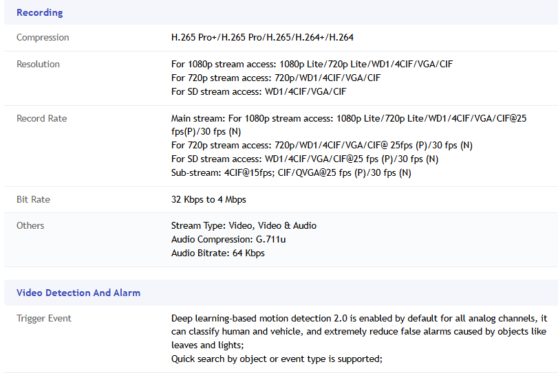 The Hikvision DS-7104HGHI-ECO/M1 4 Channel Mini 1U DVR is a cutting-edge surveillance device with outstanding features and capabilities. This Hikvision DVR’s Motion Detection 2.0 technology uses deep learning to classify human and vehicle targets, dramatically lowering false alerts produced by non-threatening items. The Hikvision DS-7104HGHI-ECO/M1 4 Channel DVR supports various video compression standards, including H.265 Pro+/H.265 Pro/H.265, resulting in efficient storage and high-quality video output. The Hikvision 4 Channel DVR supports a variety of video inputs, including HDTVI, AHD, CVI, CVBS, and IP, as well as up to 5-channel IP camera inputs with resolutions of up to 2 MP. The Hikvision DS-7104HGHI-ECO/M1 4 Channel DVR can encode video up to 1080p Lite at 30 frames per second, resulting in clear and detailed footage. With a maximum transmission distance of 1200 m for 720p HDTVI transmissions, it allows for easy installation. The Hikvision DS-7104HGHI-ECO/M1 4 Channel DVR has HDMI and VGA outputs with resolutions up to 1920 × 1080 at 60 Hz, enabling simultaneous video output. Audio features include one RCA audio input and four channels via coaxial cable, as well as two-way audio functionality for improved communication. The Hikvision DS-7104HGHI-ECO/M1 4 Channel Mini 1U DVR offers simultaneous playback for up to four channels, making it simple to evaluate footage. It records in a variety of video compression formats, with customizable frame rates and bitrates for optimal performance. The Hikvision DS-7104HGHI-ECO/M1 4 Channel DVR has a total bandwidth capacity of 64 Mbps and can enable remote connections from up to 32 users. The network interface features a self-adaptive Ethernet connector, and the DVR supports several network protocols, including TCP/IP, DHCP, and Hik-Connect. The Hikvision DS-7104HGHI-ECO/M1 4 Channel Mini 1U DVR is an excellent solution for complete surveillance needs, with a SATA interface that supports up to 4 TB of storage and two USB 2.0 ports for quick data transfer.